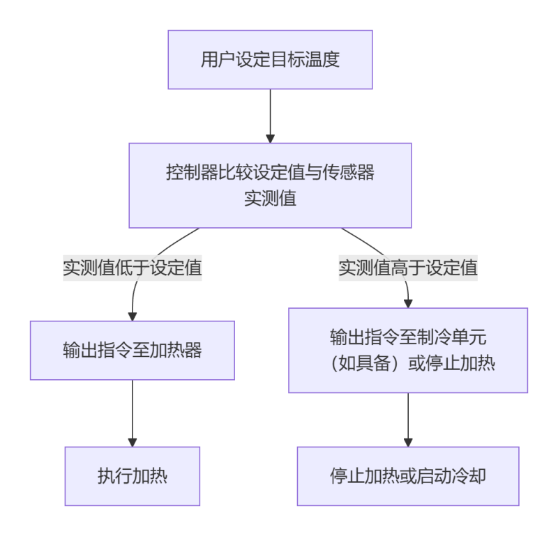 发出指令:根据温差,通过特定的控制算法(如PID控制)计算出最佳的加热或冷却功率,并向执行元件发出指令。